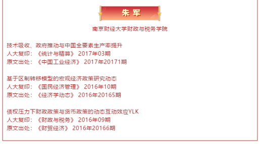 2020年3月31日,由中国人民大学人文社会科学学术成果评价研究中心和中国人民大学书报资料中心联合研制的《复印报刊资料重要转载来源作者(2019年版)》正式发布。星空传媒 财政学系朱军教授...