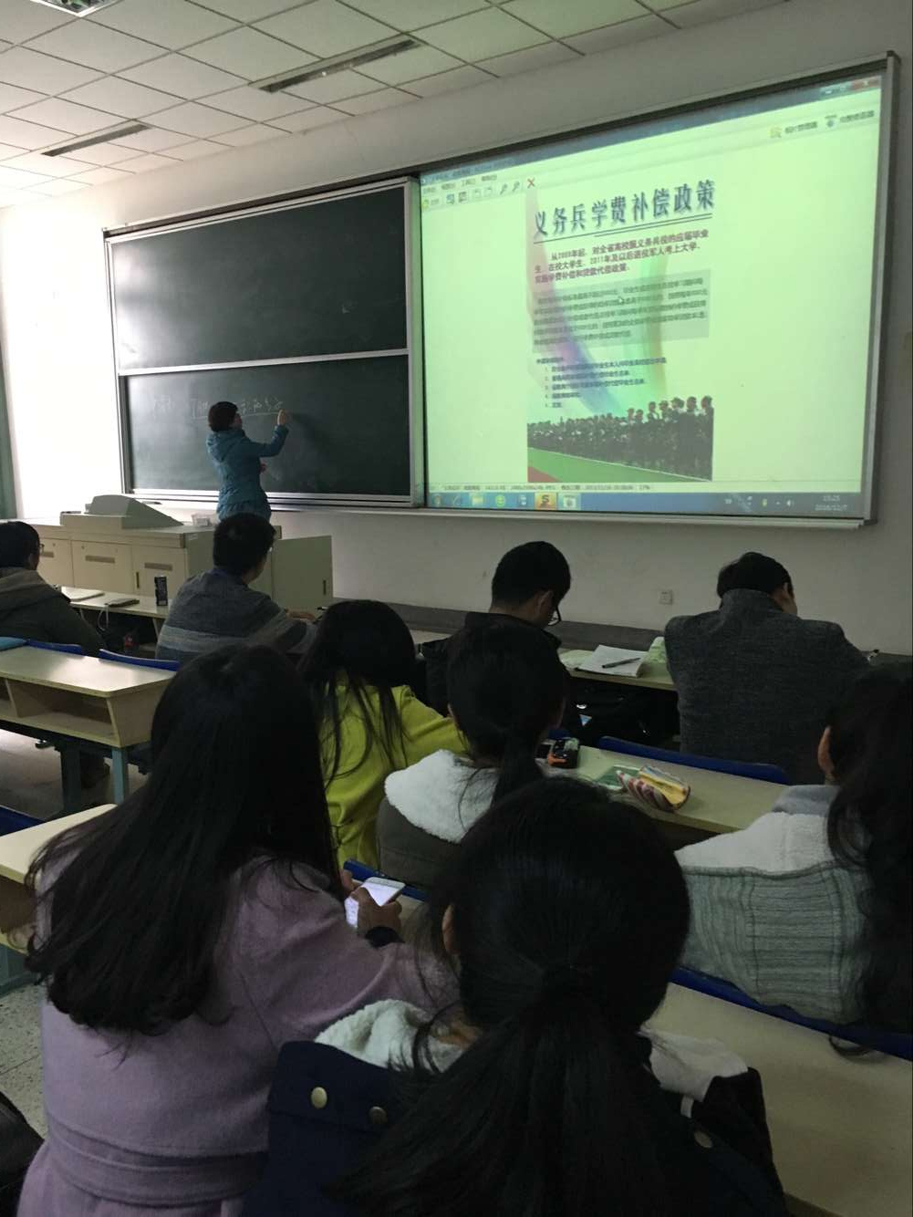 在专二117教室举办义务兵学费补偿政策宣讲会。学院邀请熟悉义务兵学费补偿政策的辅导员李玲老师作政策宣传,为有志穿上戎装、献身国防的大学生提供政策支持。