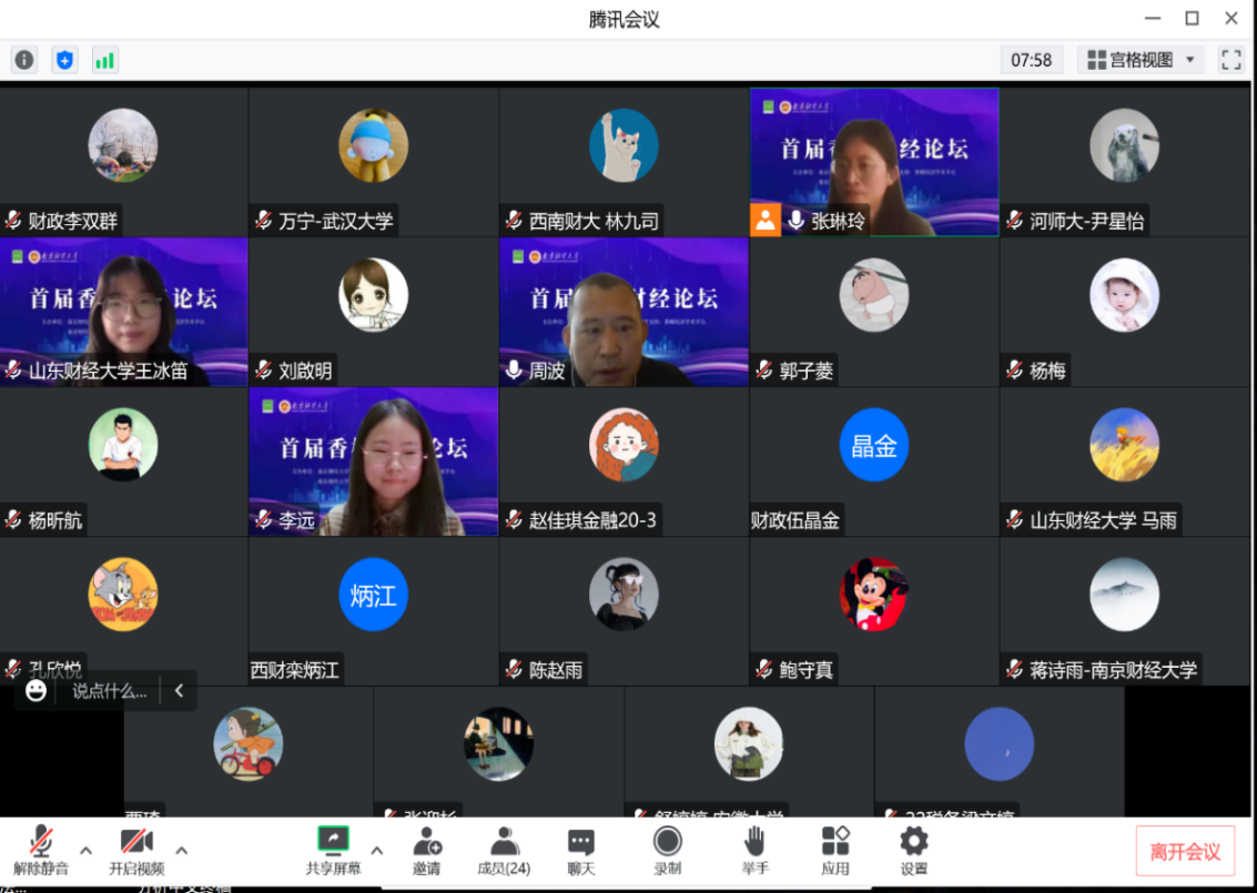 和国际经贸学院主办,香樟经济学术圈进行学术支持。组委会共征集到百余篇来自全国各高校师生与研究机构研究人员的投稿,通过香樟财经论坛论文评审委员会匿名评审,共遴选出24篇论文进行宣讲交流。论坛开幕式由星空传媒