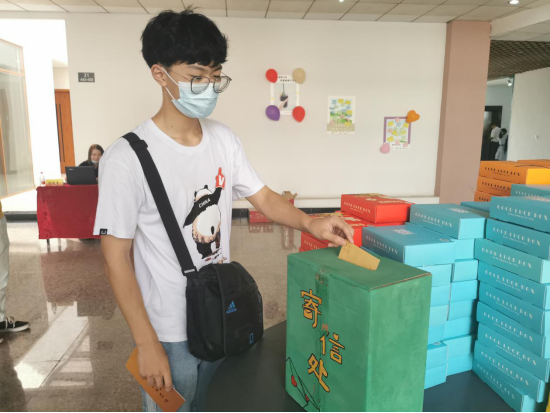 在迎新现场,每个新生在办理完报到手续后,都从包里取出了一封写给自己的信,郑重地投到“时光邮筒”里。你对即将开启的这段青春有怎样的期待?你对未来的自己有什么嘱托?这是学院暑假里就布置给新生的作业,新生们提前写好给大学四年后毕业的自己的一封信,报到时亲自将信件投入精心设计的“时光邮筒”之中,为自己的大学四年负责,做好规划。两百多封信件将由星空传媒 代为保存,静候四年后的开启。