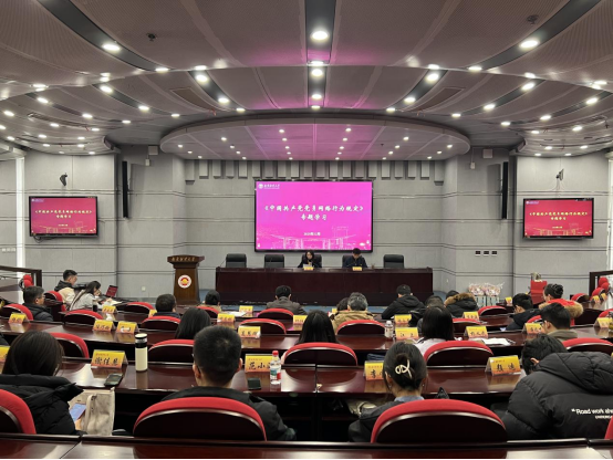 为推动师生党员带头建设“清朗网络空间”,学院组织全体党员师生于会上开展《中国共产党党员网络行为规定》专题学习并集中观看党的创新理论专题学习片《向新攀登》。