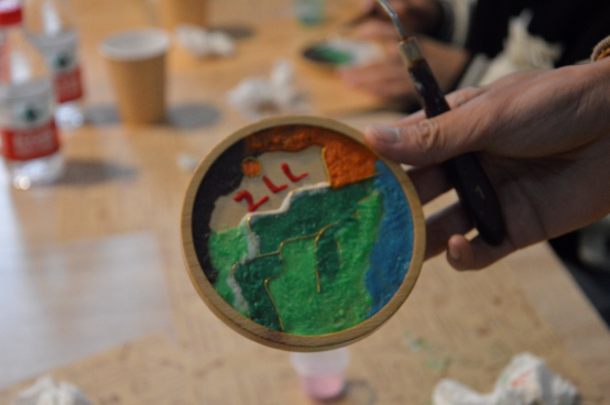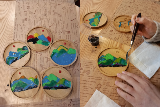 随后,师生一起开展了“非遗珐琅画好最美‘同心圆’”活动。在画好“千里江山同心圆”手工制作环节,师生们两两分组共同完成非遗珐琅杯垫的制作。千里江山掐丝珐琅杯垫,采用只此青绿元素,和传统非遗工艺相结合,运用到日常用品中,将艺术融入生活,表达了对美好生活的无限愿景。珐琅杯垫采取“千里江山同心圆”的样式,寓意各族人民团结一心的强大合力,铸牢中华民族共同体意识。最后,师生们共同拿着制作完成的“同心圆”珐琅杯垫亲切合影,现场气氛热烈。