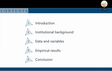 孔东民教授为师生分享了一篇学术论文,文章探讨了地方政府财政压力与公司污染排放之间的关系。首先,孔东民教授介绍了创作这篇文章的背景、研究的重要性以及运用的实证研究方法;他以农业税制度的产生、发展和废止作为论文创作的制度背景,引出了农业税的取消加大了地方政府财政压力的表述。随后,孔教授对实证分析部分作了详细的介绍,包括实证研究的数据来源、变量设置、描述性统计、基本回归结果分析、安慰剂检验等,其中,基本回归结果显示:农业税占比较高的地区在取消农业税之后环境污染程度提高。报告中,他还就政府补贴、公司债务压力、是否为外资企业等因素,对地方债务压力与公司污染排放关系的影响做了具体分析。最后,孔教授得出了农业税的取消对地方企业污染排放有提升的研究结论。