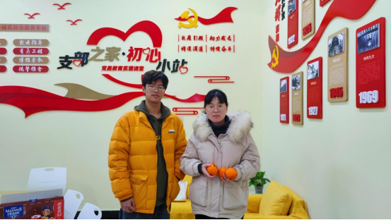 于中苑“初心小站”党建活动室为考研学子发放礼物)