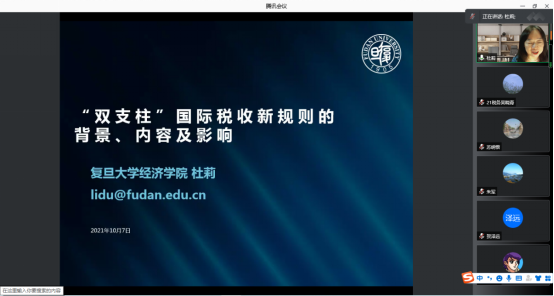 、公共财政研究中心、中国财税治理研究院的邀请,复旦大学经济学院公共经济研究中心执行主任、税务硕士专业学位项目学术负责人杜莉教授通过腾讯会议,为学院师生作了题为《‘双支柱’国际税收新规则的背景、内容及影响》的线上学术讲座。学院部分教师和全体硕士研究生参加了本次讲座。