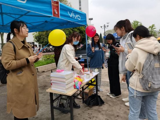 税法普法宣传进校园。4月12日和13日中午,由我院主办、法学院协办的“税与法同行”税收宣传月主题活动在仙林校区中苑食堂和西苑食堂前广场相继举行。现场人声鼎沸,热闹非凡。活动现场,蓝色帐篷前人头攒动,络绎不绝的人群将帐篷四周的区域挤得水泄不通。围聚在帐篷周围的同学们一个个低着头紧皱眉头,作苦思冥想状。原来这群“低头族”正在手机上参加税法答题活动。本次活动采用线上竞答模式,同学们现场扫码进行答题,答题结束后可根据自己的分数获得相应的奖品。“同学,想试一试我们的答题活动吗?”“想对税法多一些了解吗?答题有礼品相赠哦。”现场工作人员热情地向过往的同学发出邀请,越来越多的人驻足参与到活动中。问答的网站上有如“属于税法体系主体与核心的是什么法律?”“税法中属于对流转课税的有哪些税种?”之类的专业性问题,也有在实际生活经常会遇到的具体问题。这些问题让同学们对税法有了更深入的认识,也拓展了同学们的知识面,使同学们更深入地体会到不同学科之间的相互融合。“平时我们在课本上学习到的基本都是本专业的学科知识,很少有机会接触到其他专业领域。我认为这次活动是一个很好的机会,能拓宽自己知识面,了解其他专业知识。”活动参与者杨敏同学如此表示。