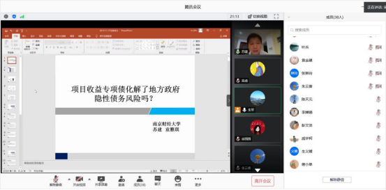 副教授苏建老师通过腾讯会议为学院师生作了主题为“项目收益专项债化解了地方政府隐形债务风险吗” 的线上学术报告。学院部分教师和19级税务专硕研究生参加了本次学术报告。