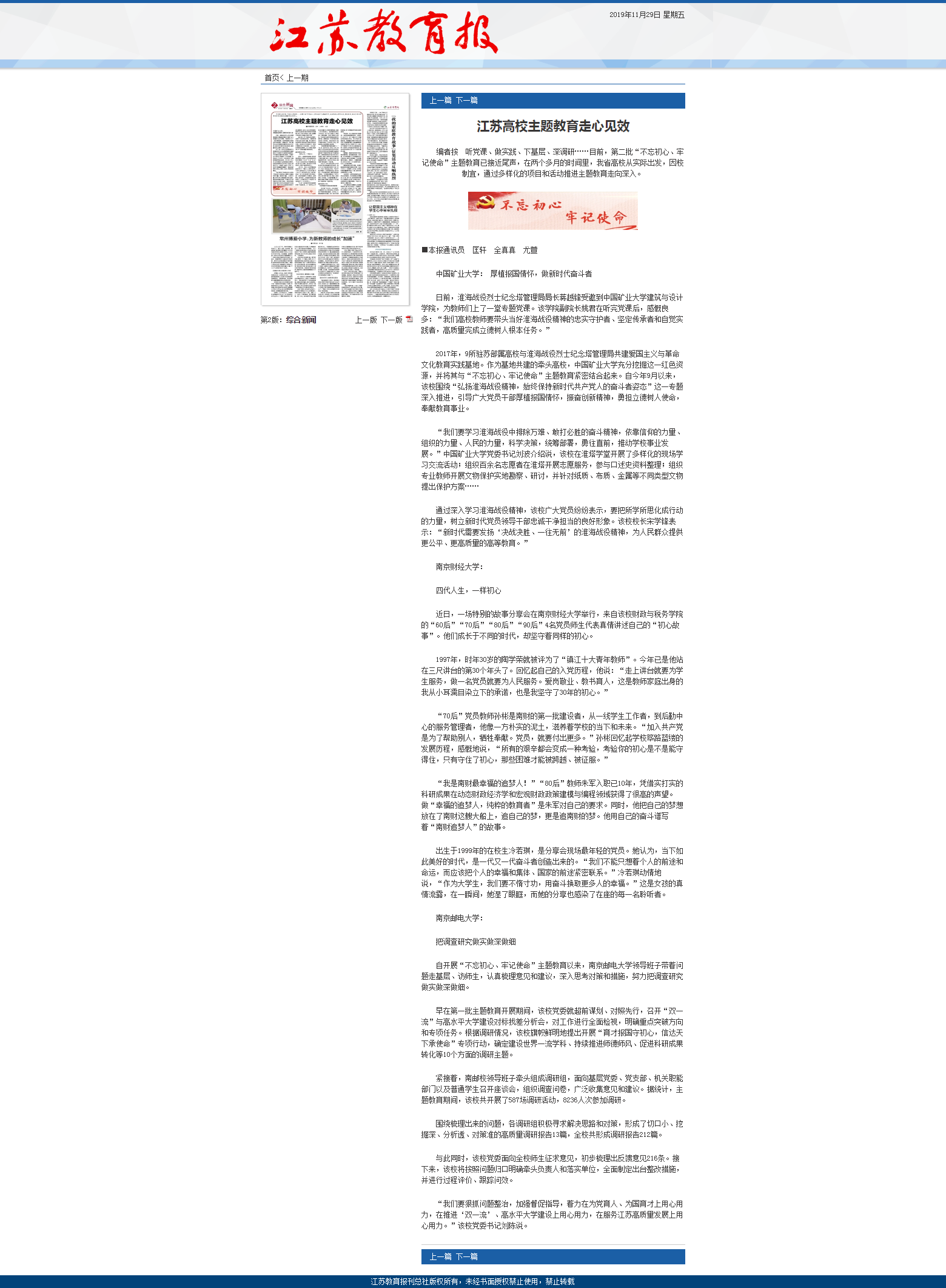 11月29日《江苏教育报》第二版,刊登了题为《江苏高校主题教育走心见效》的文章,文中报道星空传媒
