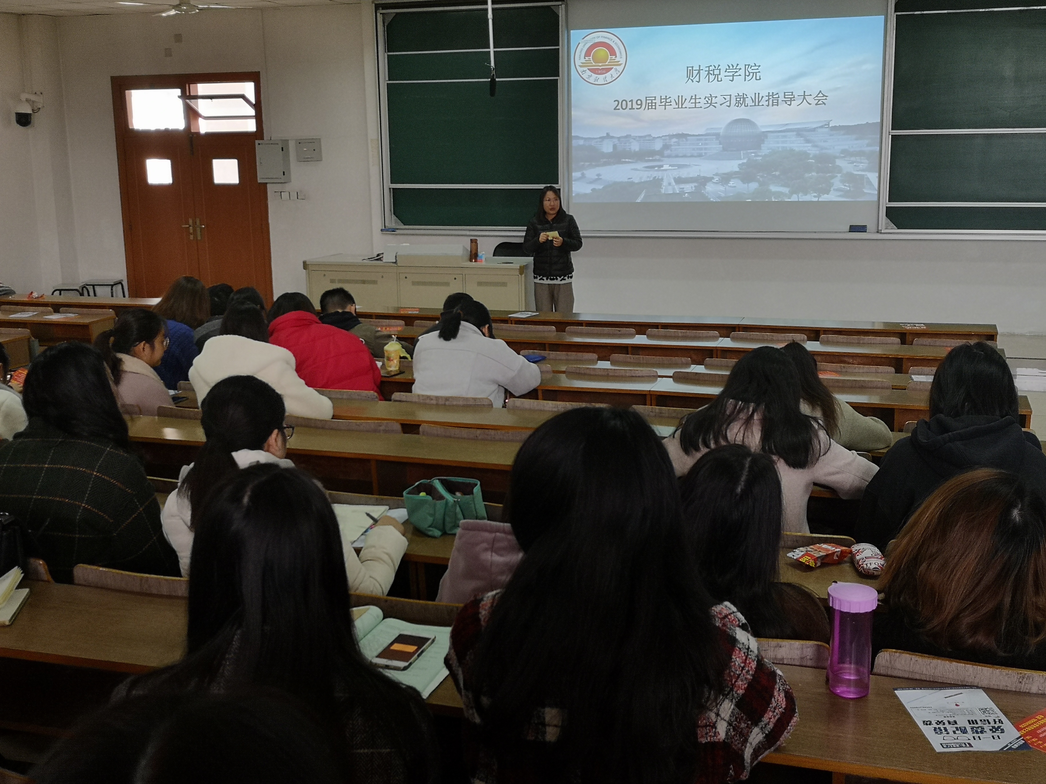 2019届毕业生动员大会在博观楼202教室举行。副院长管永昊,党委副书记李慕原,财政系主任李婧,毕业班辅导员贾晓燕参加了动员大会。会上,管永昊副院长就毕业前的毕业论文、实习平台等教学工作作了动员,李婧主任就毕业论文的具体要求作了解答,李慕原副书记和贾晓燕老师分别就毕业实习、求职与安全问题做了动员。动员会后,教务处就首次试点使用的实习网络平台做了培训。