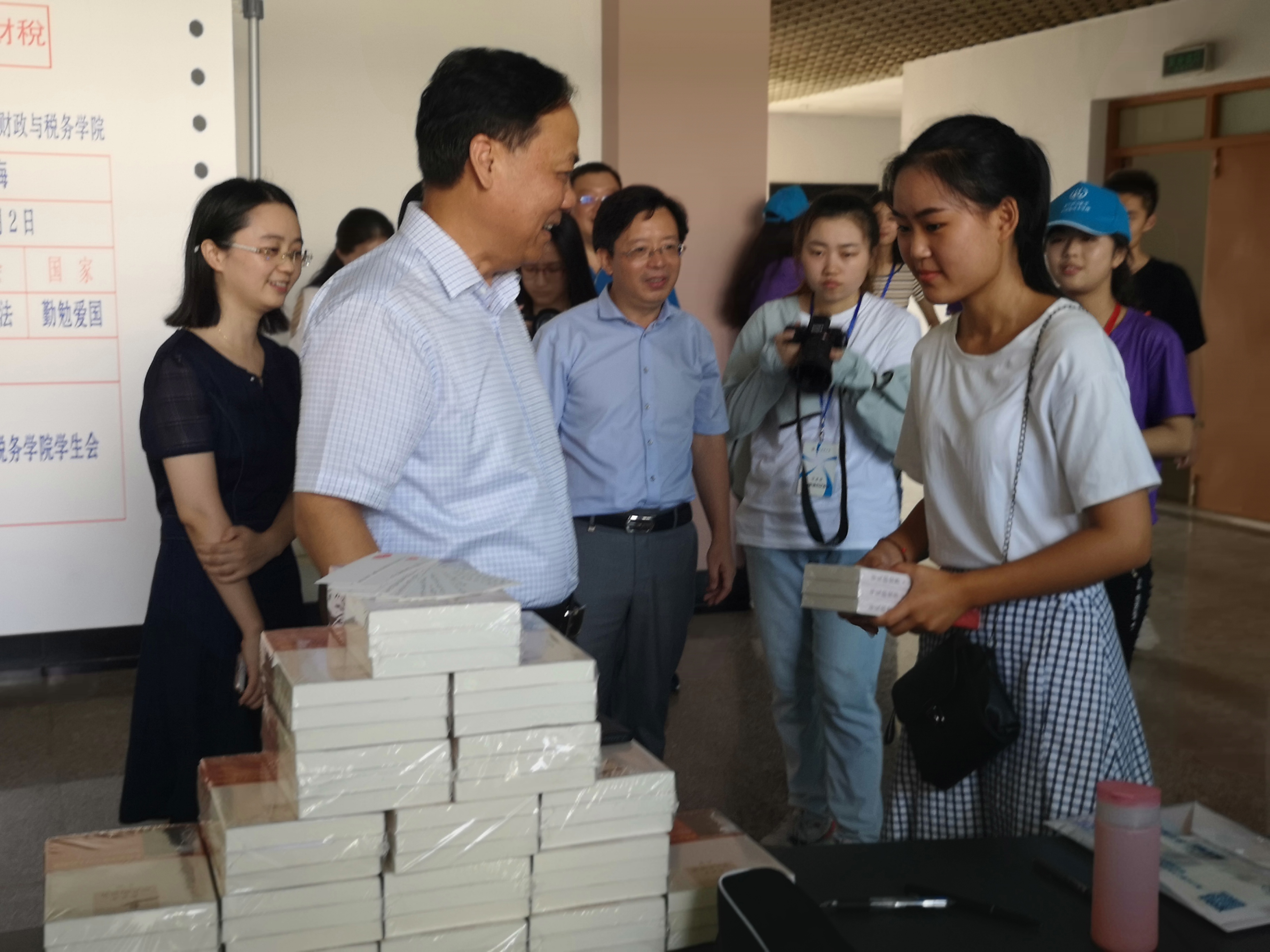 早上8点30分,院领导、系主任和教授们就在院会议室开始了面向新生及家长们的“全天候家长会”,向新生与家长们详细介绍了学院的办学历程、专业建设、师资队伍、人才培养、奖助学金以及学校出国留学项目等情况。针对新生与家长所提出的专业、学业与职业规划的具体问题进行解答。今年的迎新安排除了常规的全天候家长会,学院还于下午14点30,召开了2018级本科生家长见面大会,全体院领导,教授代表、系主任、班主任及辅导员出席了大会。学院师生代表与到场家长做了充分交流,希望双方能够通过更加充分有效的沟通,培养新的财税人才。