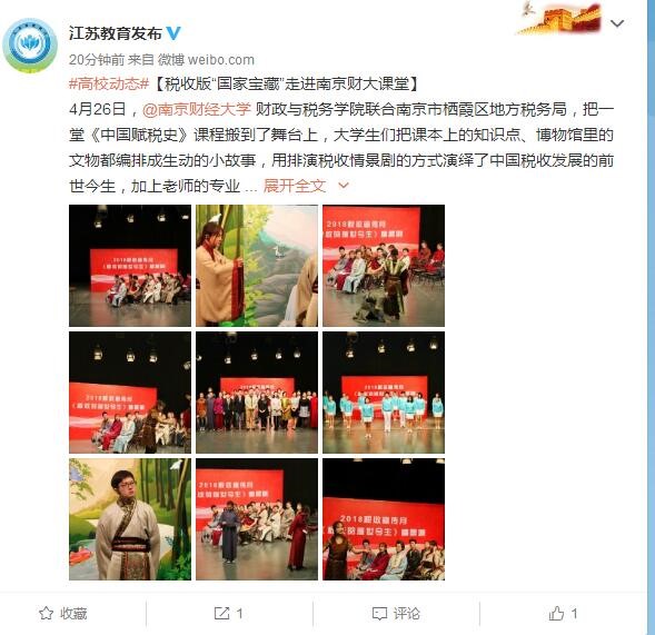 学生自编自演的情景剧《税收的前世今生》受到了中国新闻网、江苏教育频道、江苏省教育厅微博等多家省内媒体的报道。