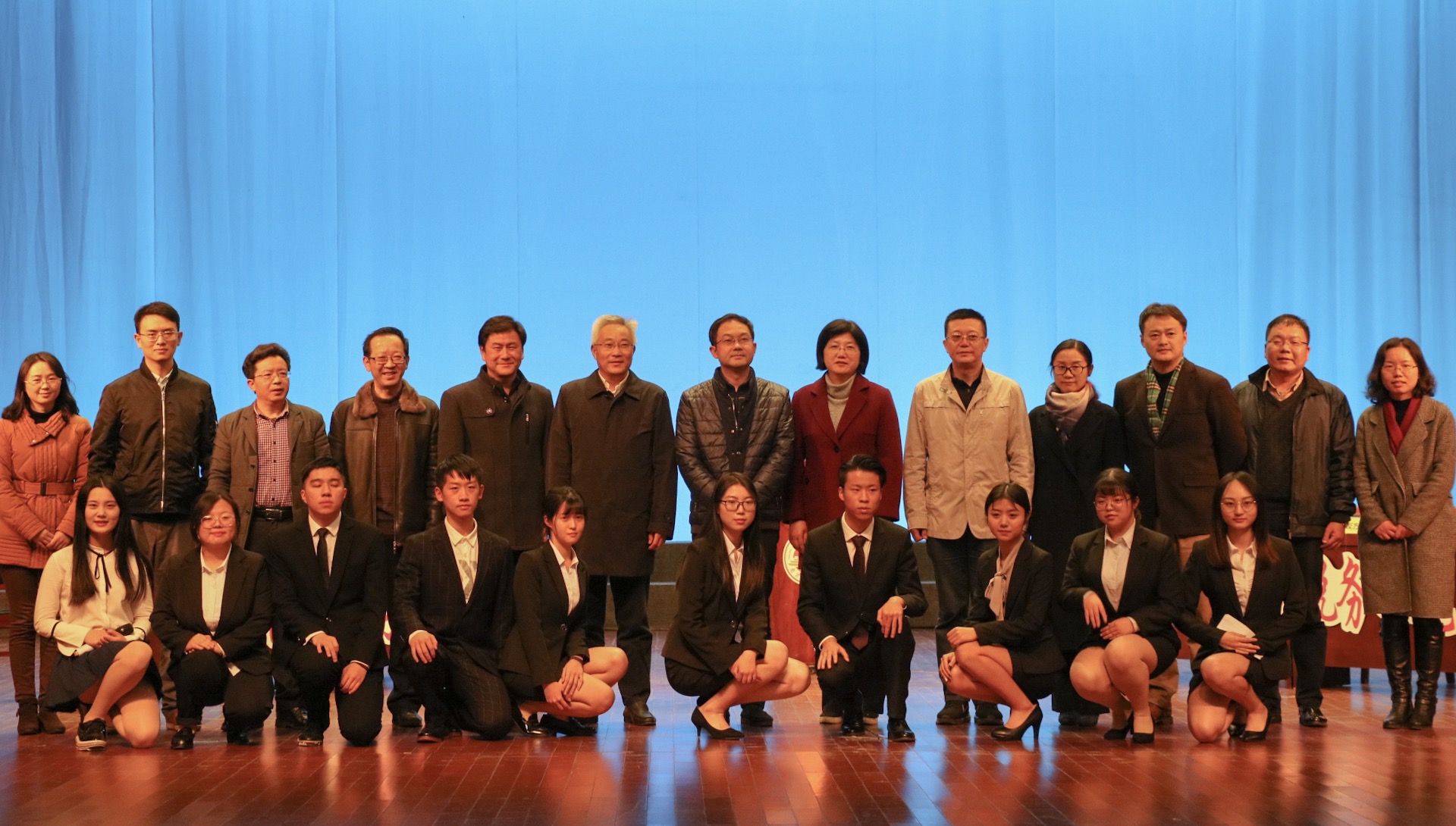 申珅、金融学院刘澳、经济学院朱睿、国际经贸学院张博琳、国际经贸学院岑鹭雅、管理科学与工程学院陶云杰。相关领导为获奖选手及获奖代表队颁奖并且集体合影留念。