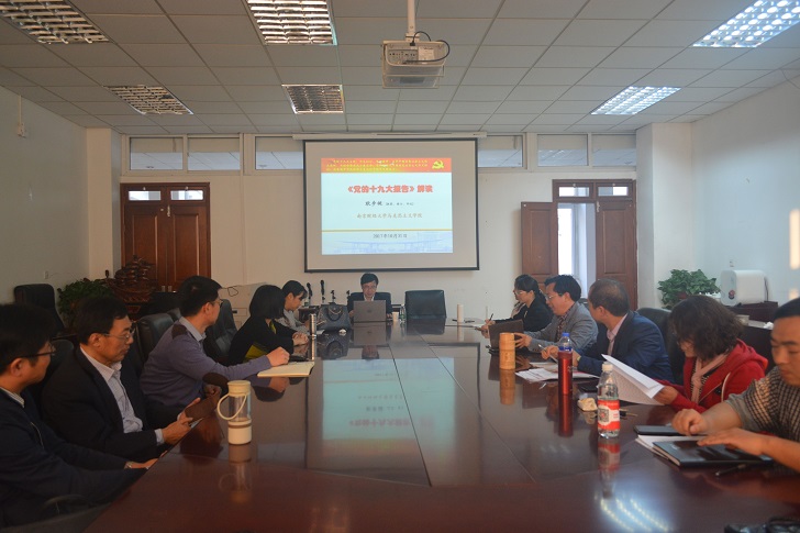 在德经楼408会议室开展十九大精神专题学习研讨活动,马克思主义学院党委书记耿步健教授应邀作党的十九大精神专题解读。改革发展办公室主任张金龙、星空传媒