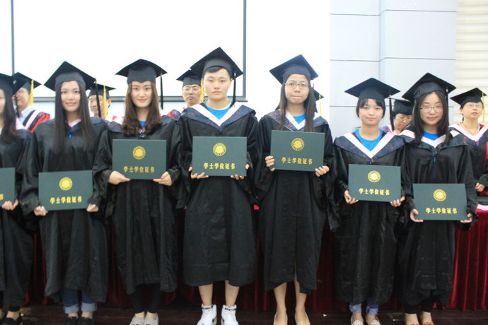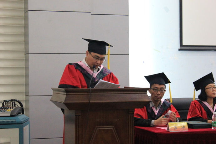 副院长朱军副教授宣读了《关于授予2015届毕业生学士学位的决定》,毕业生们身穿学士服,走上前台,校领导及学院领导、教授为他们一一拨过学位帽上的流苏,授予学士学位证书。毕业生们不舍的接过导师手中的证书,道一声感谢。简短俩字,包含着对母校、师长四年关怀和付出的感恩,更有对母校的依依不舍之情。