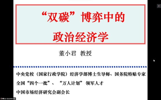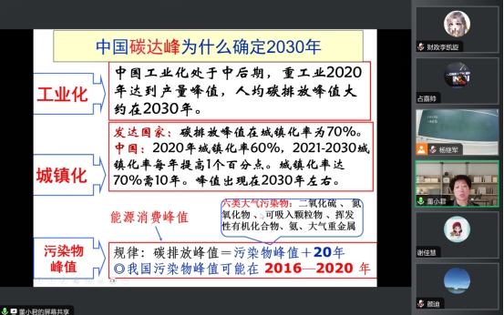 董教授围绕着“碳达峰”和“碳中和”两个关键词,结合我国的实际情况,对国际气候论坛格局及其背后所蕴含的政治经济学理论展开了精彩的阐述。